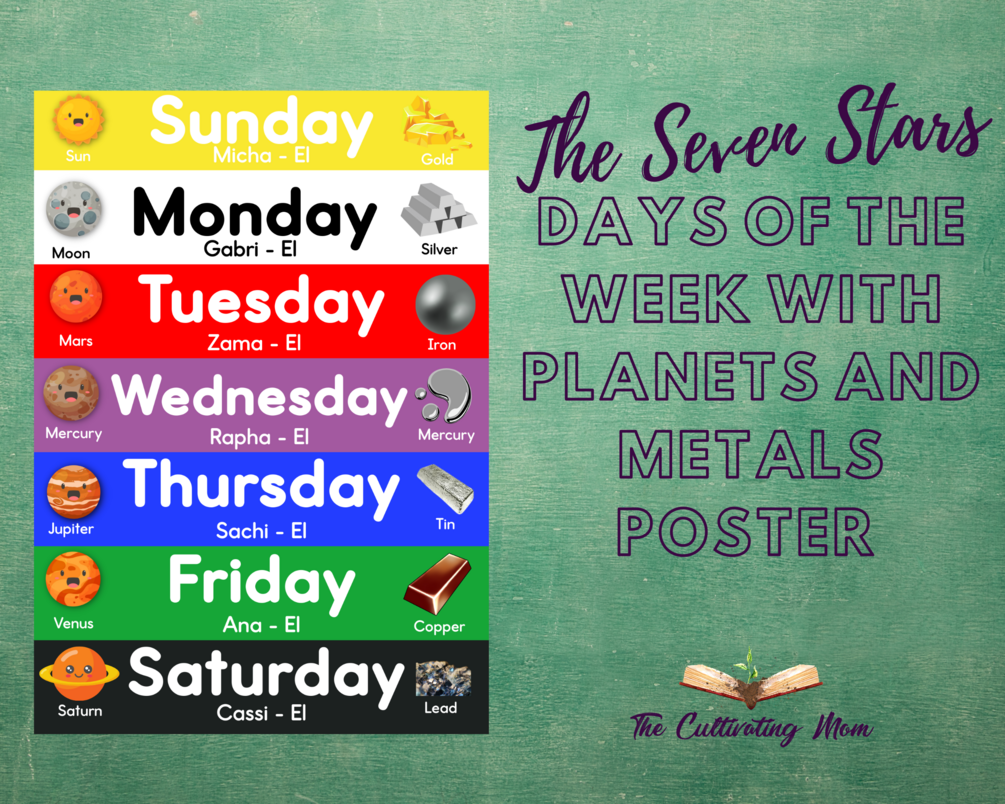 Days of the Week Poster with planets, stars, and metals for each day